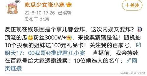 首先,得说说张小寒这位“爆料达人”。她可是娱乐圈里的小有名气的“狗仔”,经常能挖到一些大料的。这次,她突然在微博上爆料了一个名单,说是娱乐圈里一些明星的“黑料”,瞬间引起了广泛关注。